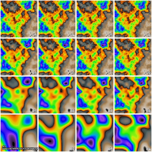 The iterative process used to generate bidimensional fractal fields (16 iterations) [Le processus itératif de génération de champs fractals bidimensionnels (16 itérations)]