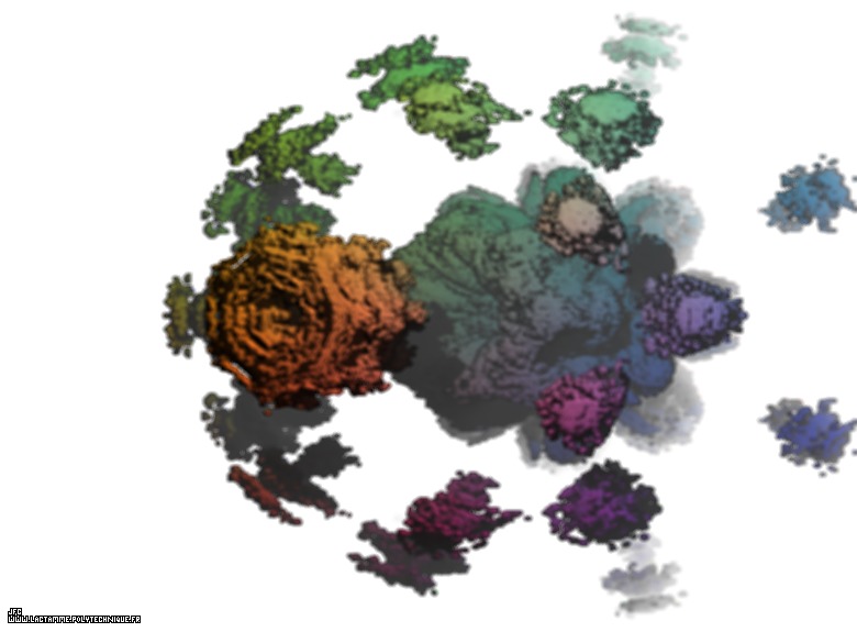 A pseudo-quaternionic Mandelbrot set (a 'Mandelbulb') -tridimensional cross-section- [Un ensemble de Mandelbrot dans l'ensemble des pseudo-quaternions (un 'Mandelbulb') -section tridimensionnelle-].