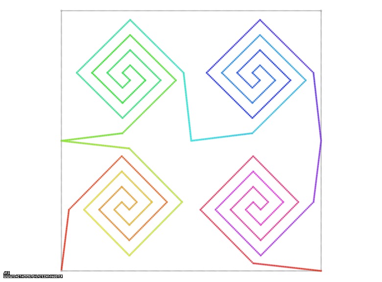 A Bidimensional Hilbert-like Curve defined with {X1(...),Y1(...)} related to 'square spiral' -iteration 2- [Une courbe bidimensionnelle du type Hilbert définie avec {X1(...),Y1(...)} liées à une 'spirale carrée' -itération 2-].