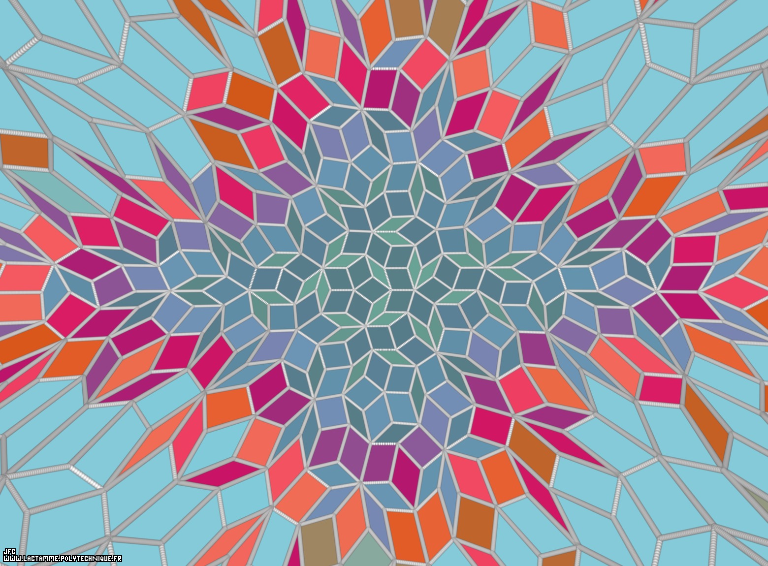 A tridimensionally distorded aperiodic Penrose tiling of the plane [Un pavage de Penrose apériodique du plan, distordu tridimensionnellement].