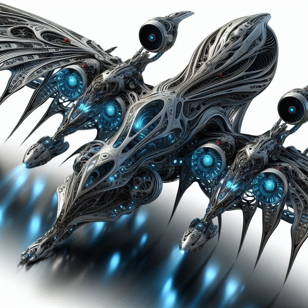 An Airplane in the style of Hans Ruedi Giger -Courtesy of 'designer.microsoft.com'- [Un avion à la façon de Hans Ruedi Giger -Remerciements à 'designer.microsoft.com'-].