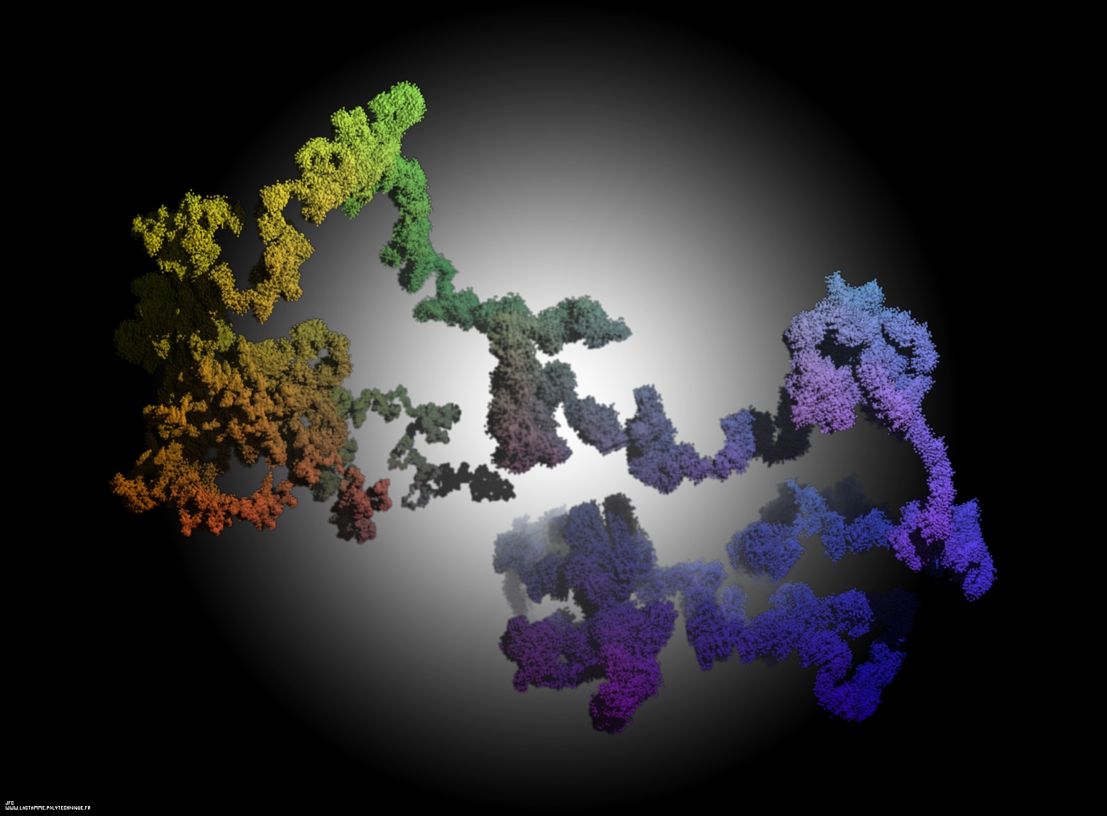 Tridimensional accumulation of 50 strongly correlated tridimensional brownian motions -50000 time steps- [Accumulation tridimensionnelle de 50 mouvements browniens tridimensionnels fortement corrélés -50000 pas de temps-].