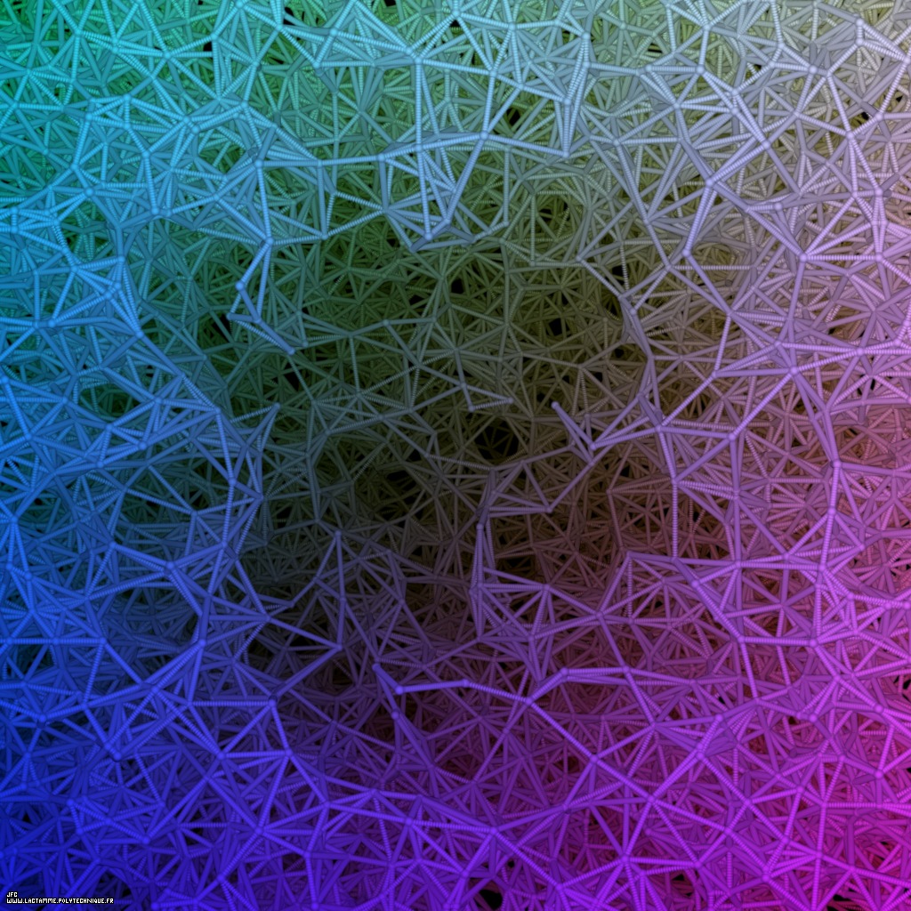 Heterogeneous -tridimensional anti-gaussian field- random meshing of a cube [Maillage aléatoire hétérogène -champ anti-gaussien tridimensionnel- d'un cube].