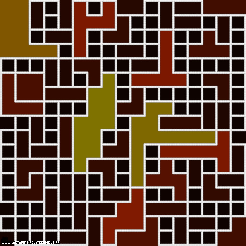 The luminance of the color palette used displays the size of each domino (dark/light color means respectively small/large domino).
