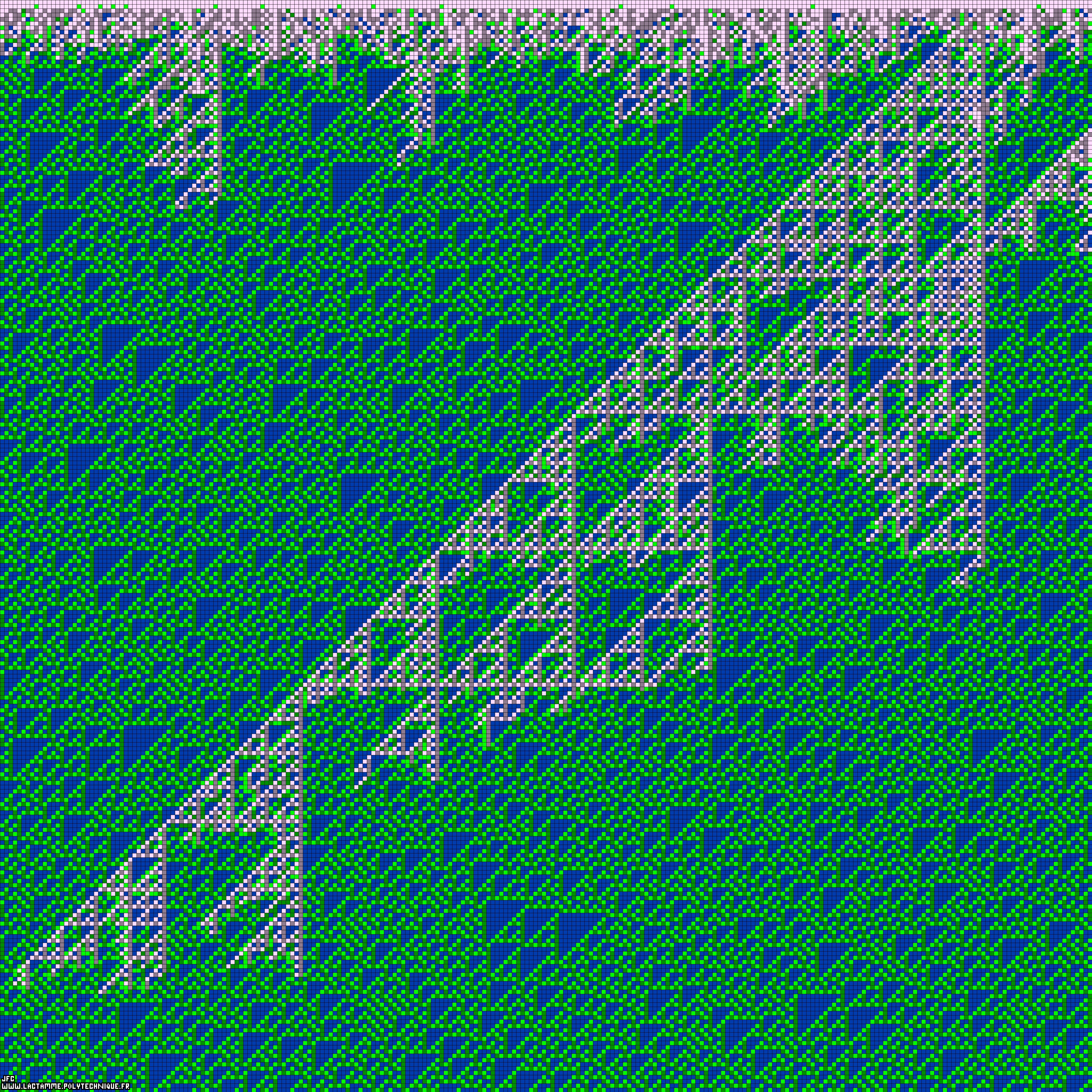 The Proth-Gilbreath Conjecture -display of the process for the 256 prime numbers following 100000...- [La conjecture de Proth-Gilbreath -visualisation du processus pour les 256 nombres premiers suivant 100000...-].