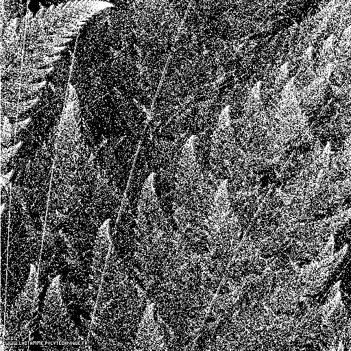 Fern structures computed by means of an 'Iterated Function Set' [Fougères obtenues à l'aide de la méthode des 'Iterated Function Sets'].