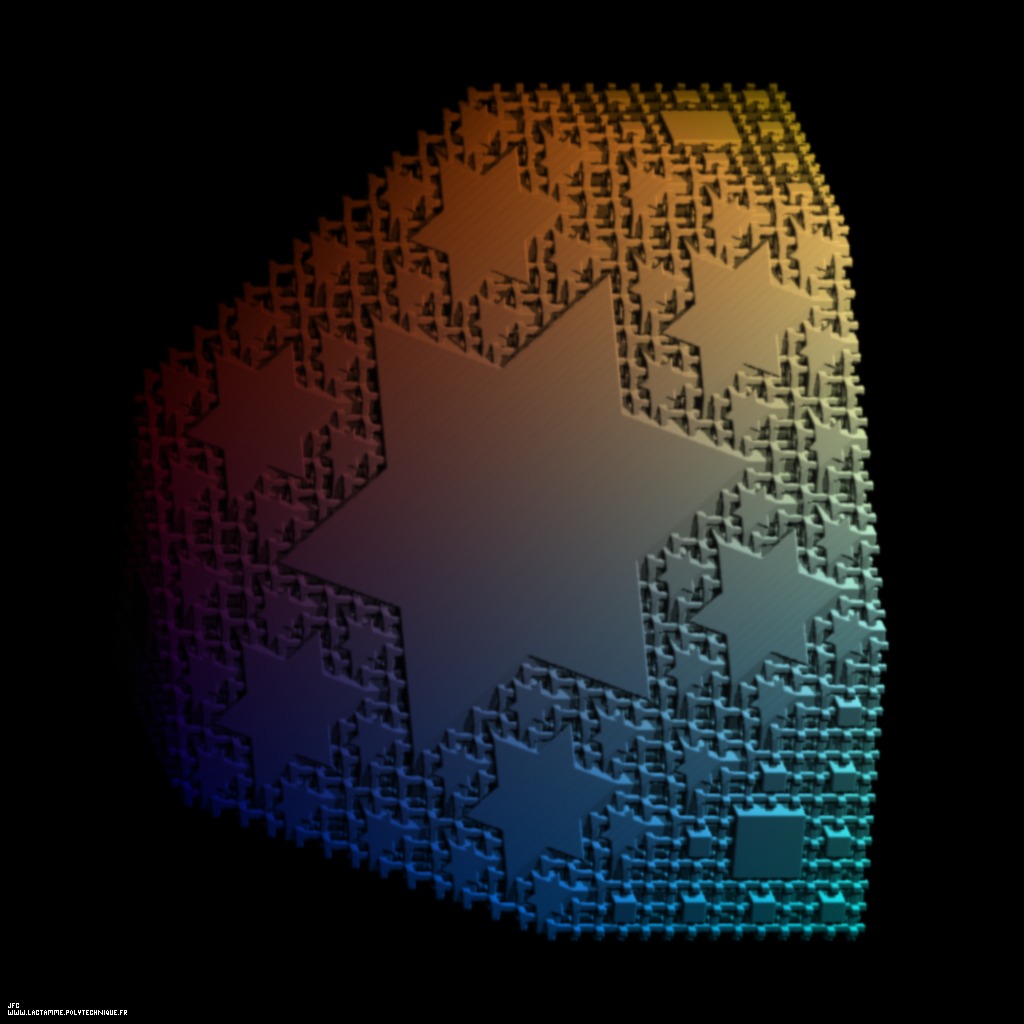 TTT TFT TTT TFT FFF TFT TTT TFT TTTwhere 'T' ('True') and 'F' ('False') means respectively "subdivide the current cube" and "do not subdivide and destroy the current cube". The rules are repeated at each level, but they can be changed periodically and for example: