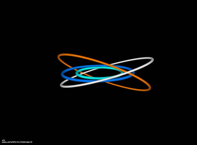 A subset of the Solar System (Uranus,Neptune,Pluto) with an extra orange virtual planet -heliocentric point of view- [Un sous-ensemble du système solaire (Uranus,Neptune,Pluto) avec une planète virtuelle orange supplémentaire -point de vue héliocentrique-].