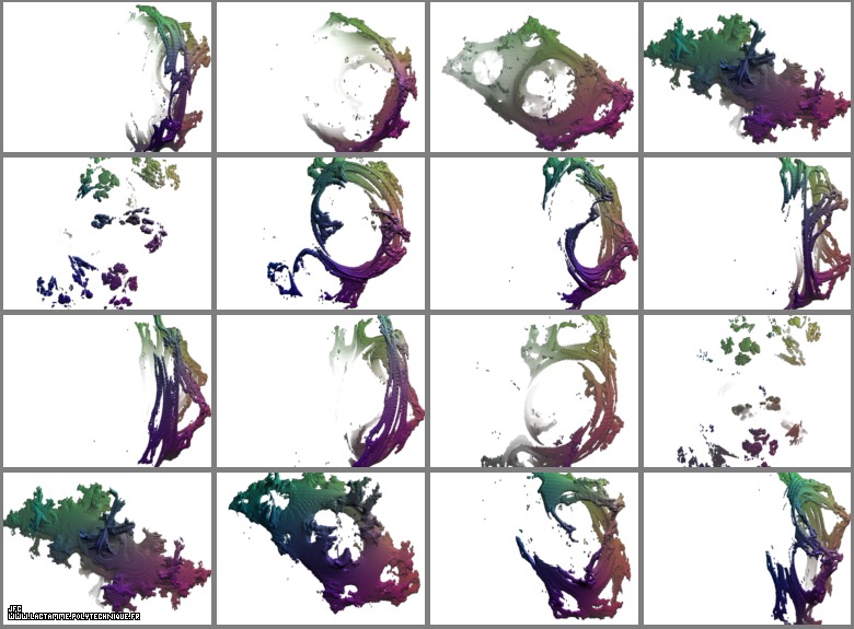 2.pi rotation about the Y axis of a pseudo-quaternionic Julia set ('MandelBulb' like: a 'JuliaBulb') -tridimensional cross-section- [Rotation de 2.pi autour de l'axe Y d'un ensemble de Julia dans l'ensemble des pseudo-quaternions (comme un 'MandelBulb': un 'JuliaBulb') -section tridimensionnelle-]