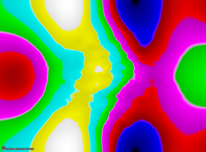 The bidimensional field defining the 'X' coordinate of a 'crumpled' Klein bottle [Le champ bidimensionnel définissant la coordonnée 'X' d'une bouteille de Klein 'froissée'].