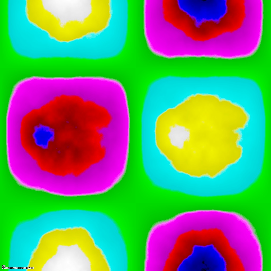 The bidimensional field defining the 'X' coordinate of a 'crumpled' sphere [Le champ bidimensionnel définissant la coordonnée 'X' d'une sphère 'froissée'].