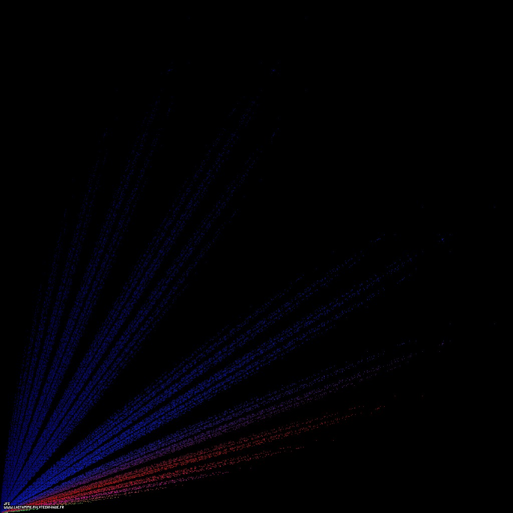 Bidimensional display of 32767 Rational Numbers by means of the Stern-Brocot Tree [Visualisation bidimensionnelle de 32767 Nombre Rationnels à l'aide de l'arbre de Stern-Brocot].