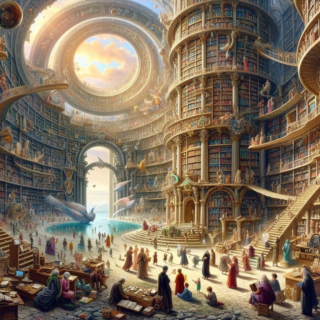 The Library of Babel in the style of Jerôme Bosch -Courtesy of 'www.bing.com'- [La bibliothèque de Babel à la façon de Jerôme Bosch -Remerciements à 'www.bing.com'-].