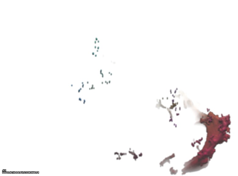 A pseudo-quaternionic Julia set ('MandelBulb' like : a 'JuliaBulb') computed with A=(-0.58...,+0.63...,0,0) -tridimensional cross-section- [Un ensemble de Julia dans l'ensemble des pseudo-quaternions (comme un 'MandelBulb' : un 'JuliaBulb') calculé pour A=(-0.58...,+0.63...,0,0) -section tridimensionnelle-].