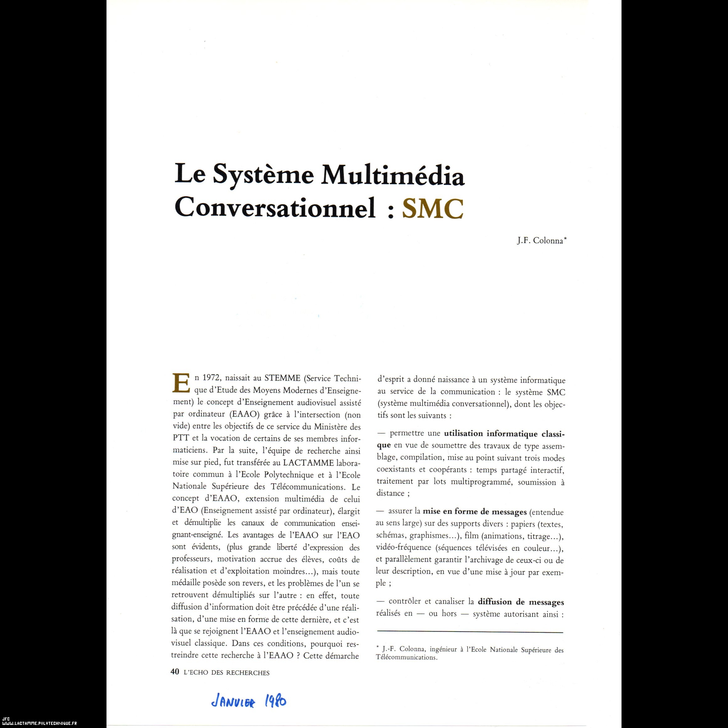 Le Système Multimedia Conversationnel: SMC, L'ECHO DES RECHERCHES, CNET, 01/1980, page 40.