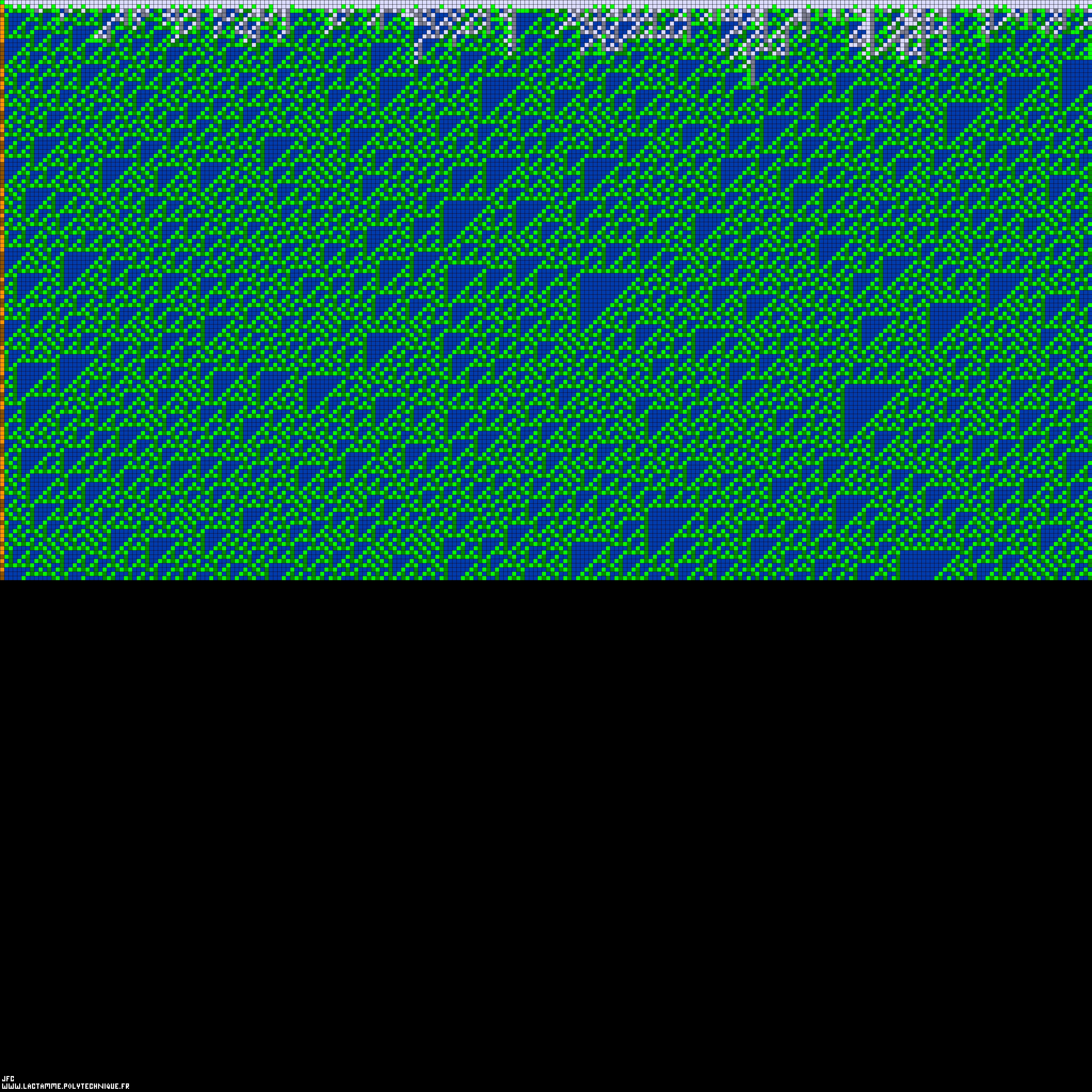Please note that this picture displays only 136 lines and not the expected 256. This is due to G(Pi(10^7))=135 and to go beyond 256, G(Pi(10^10))=329 would be necessary and it means too much computations...