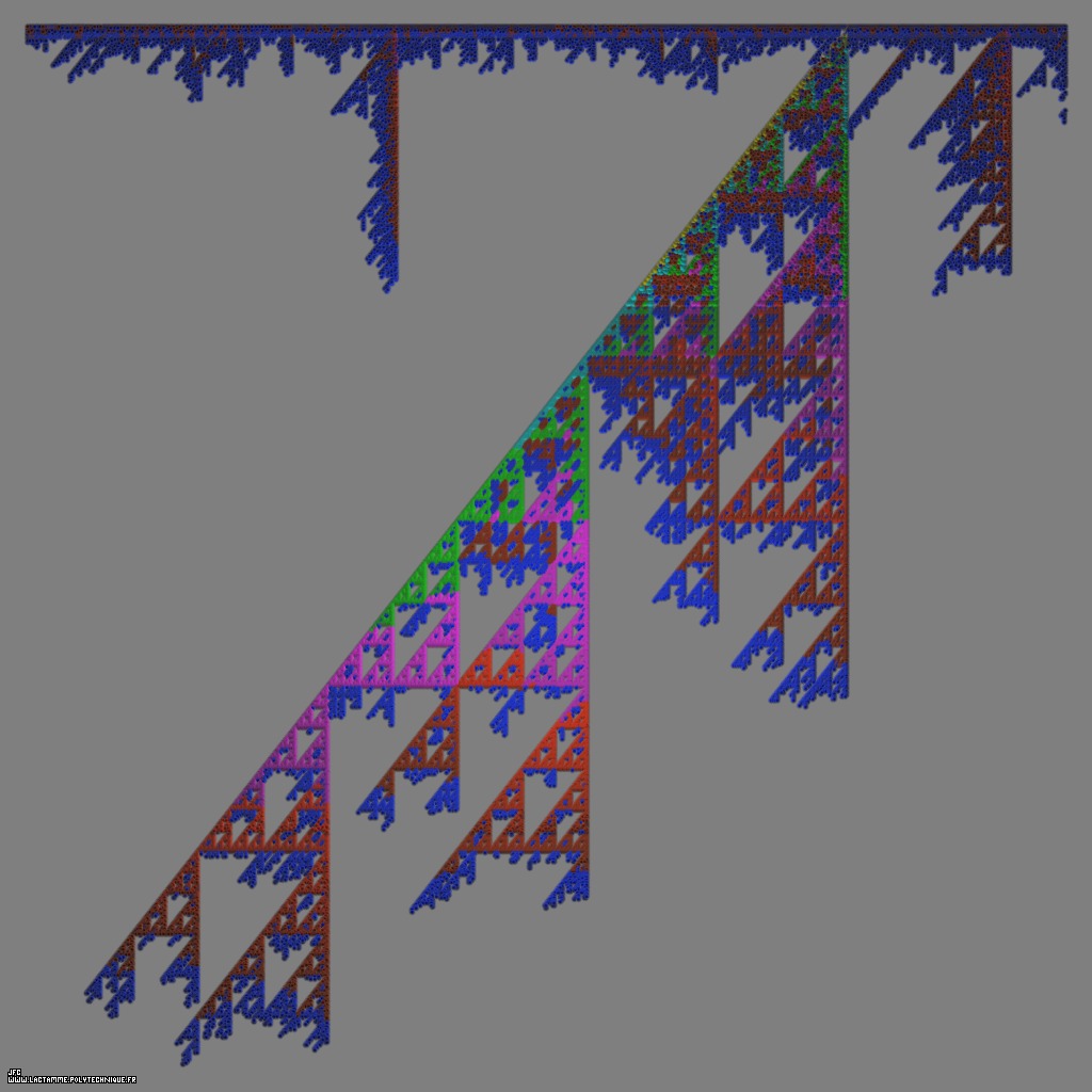 display of the Proth-Gilbreath Conjecture process for G(Pi(1.0025x10^15))=806. [Visualisation du process de la conjecture de Proth-Gilbreath pour G(Pi(1.0025x10^15))=806.]