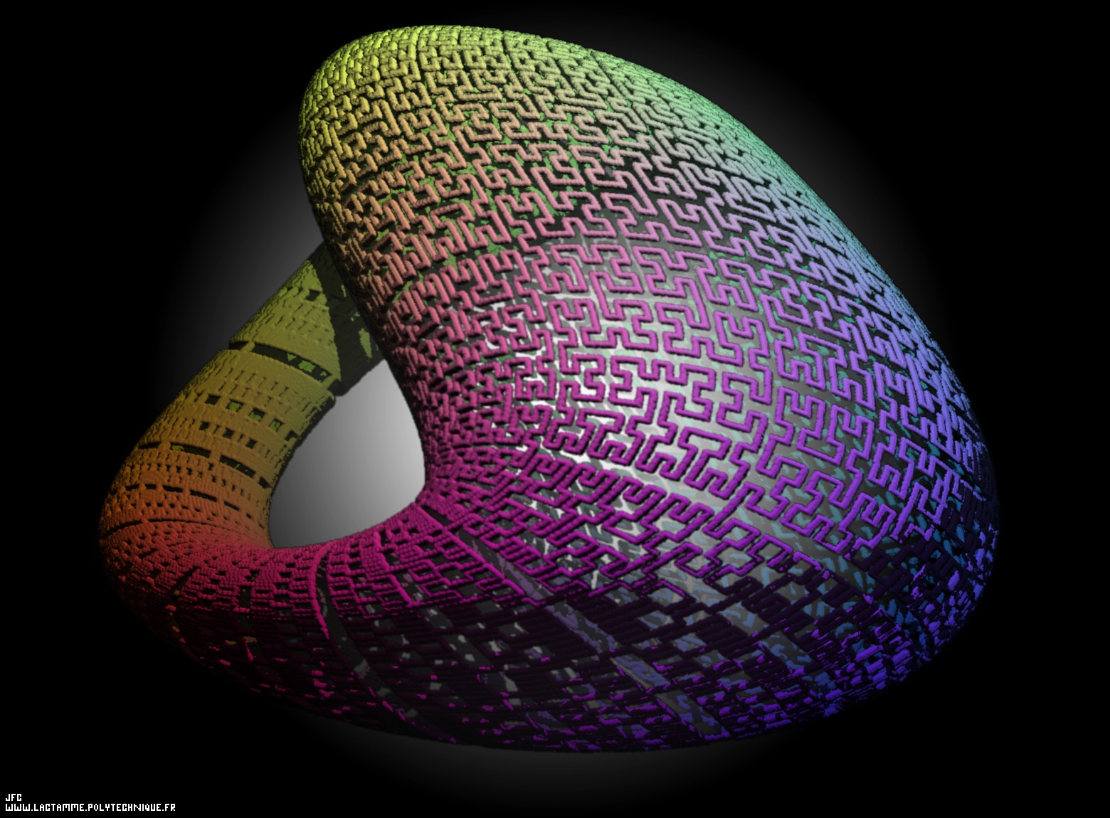 The Klein bottle described by means of a Bidimensional Hilbert Curve -iteration 7- [La bouteille de Klein décrite à l'aide d'une courbe de Hilbert bidimensionnelle -itération 7-].
