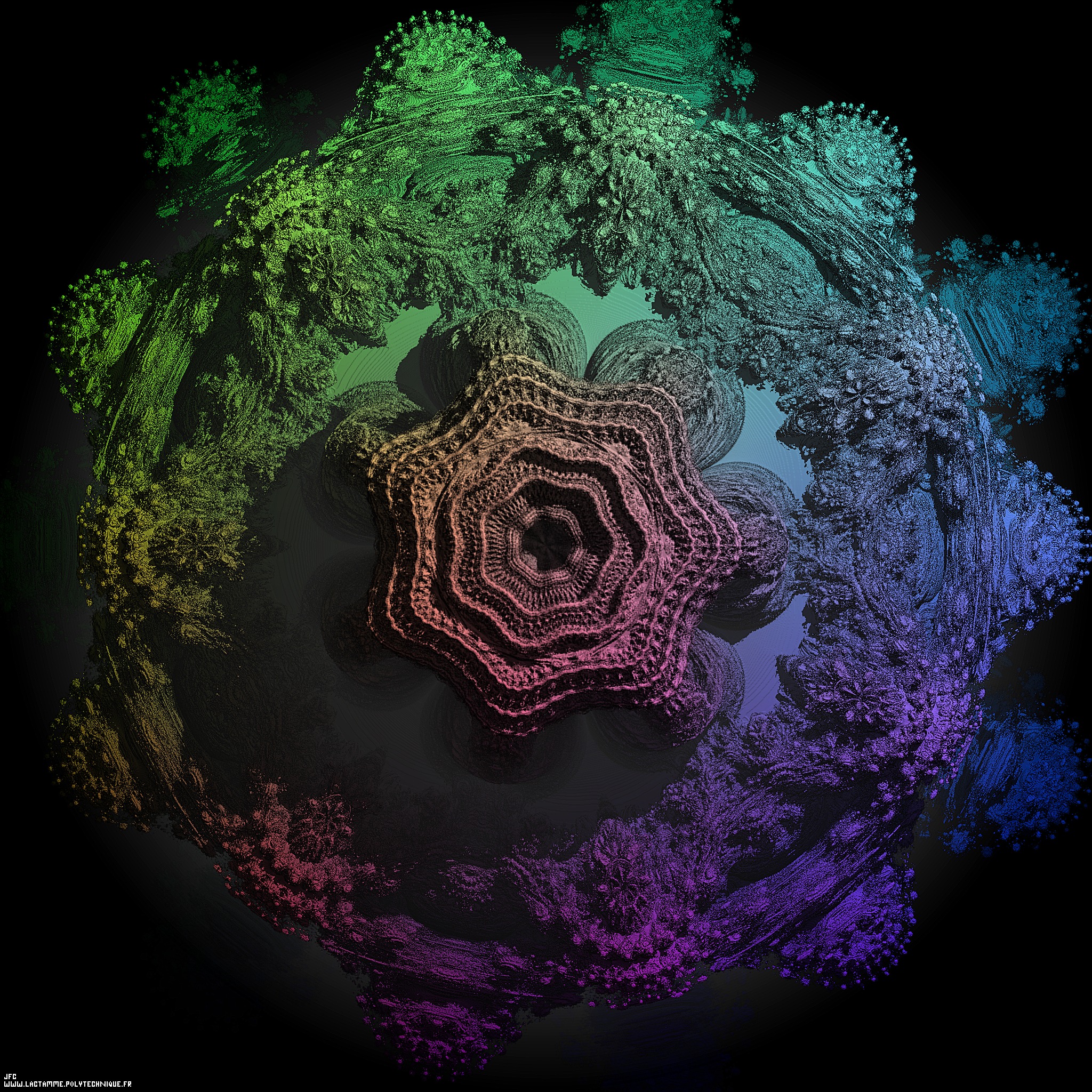 A pseudo-octonionic Mandelbrot set (a 'MandelBulb') -tridimensional cross-section, picture sharpening- [Un ensemble de Mandelbrot dans l'ensemble des pseudo-octonions (un 'MandelBulb') -section tridimensionnelle, amélioration de la netteté d'une image--].