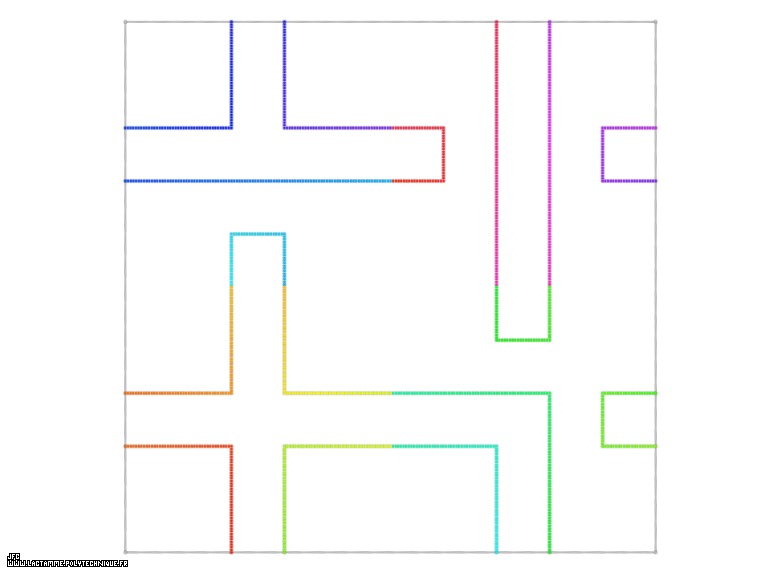 A Bidimensional non continous Hilbert-like Curve defined with {X1(...),Y1(...)} related to a periodical 'labyrinthic' structure -iteration 1- [Une courbe non continue bidimensionnelle du type Hilbert définie avec {X1(...),Y1(...)} liées à une structure 'labyrinthique' périodique -itération 1-].