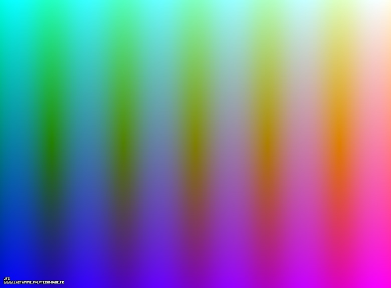 The bidimensional field defining the three coordinates of the modulus of the complex sine function [Le champ bidimensionnel définissant les trois coordonnées du module de la fonction sinus complexe].