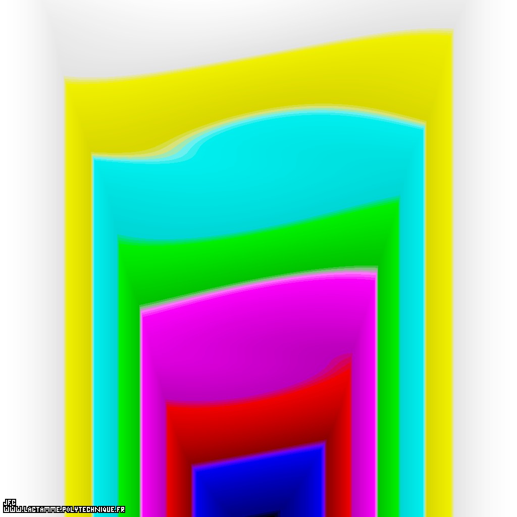 The bidimensional field defining the 'Z' coordinate of a mixing -maximum- of a sphere and of a 'thick' helix [Le champ bidimensionnel définissant la coordonnée 'Z' du mélange -maximum- d'une sphère et d'une hélice 'épaissie'].