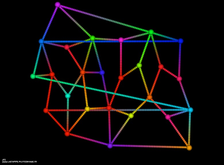 26 evenly distributed points on a sphere by means of simulated annealing displayed upon the (PHI,TETA) plane [26 points répartis équitablement sur une sphère par recuit simulé visualisé dans le plan (PHI,TETA)].