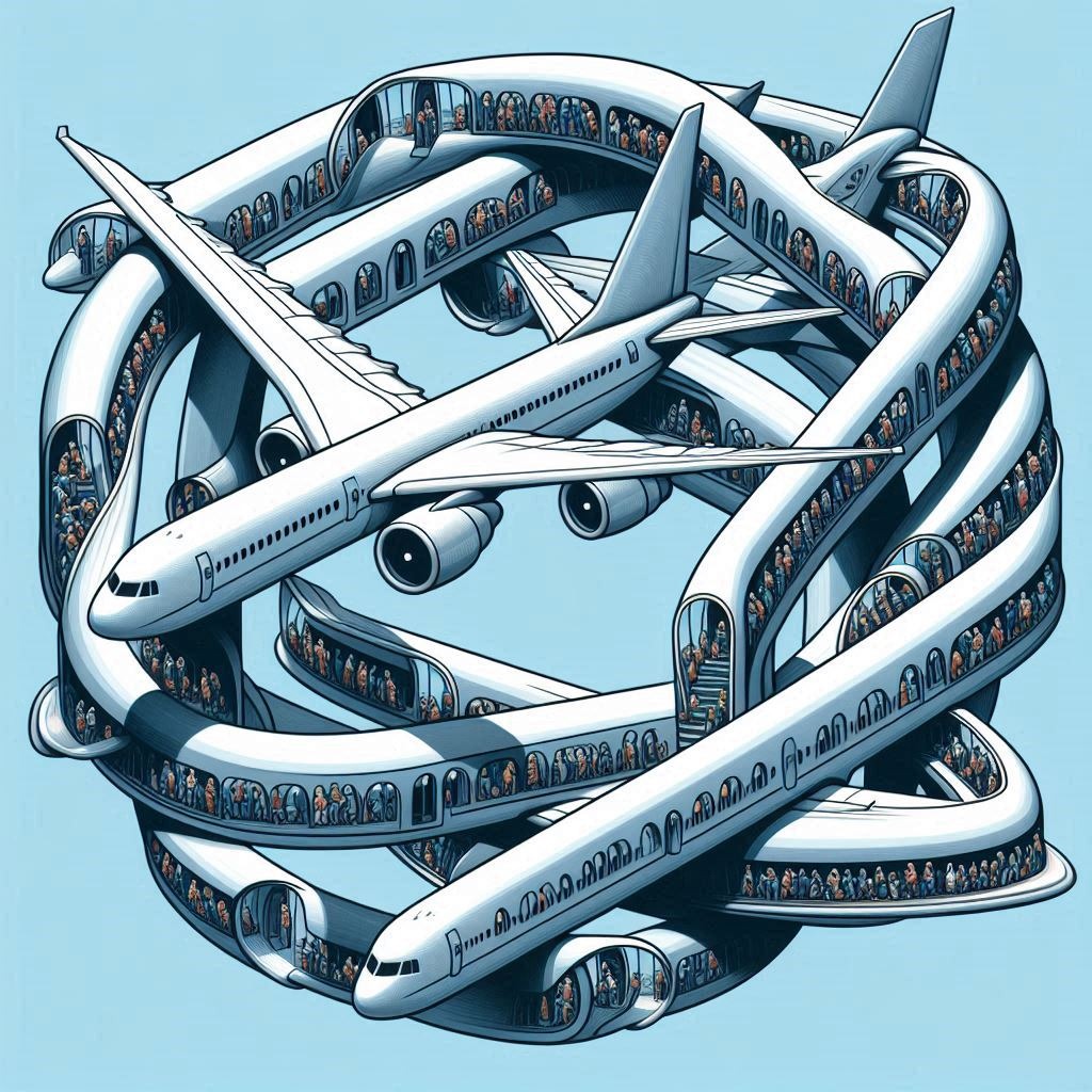 An Airplane in the style of Maurits Cornelis Escher -Courtesy of 'designer.microsoft.com'- [Un avion à la façon de Maurits Cornelis Escher -Remerciements à 'designer.microsoft.com'-].