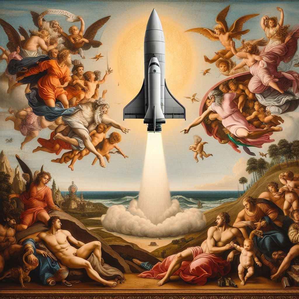 A Rocket in the style of Sandro Botticelli -Courtesy of 'www.bing.com'- [Une fusée à la façon de Sandro Botticelli -Remerciements à 'www.bing.com'-].