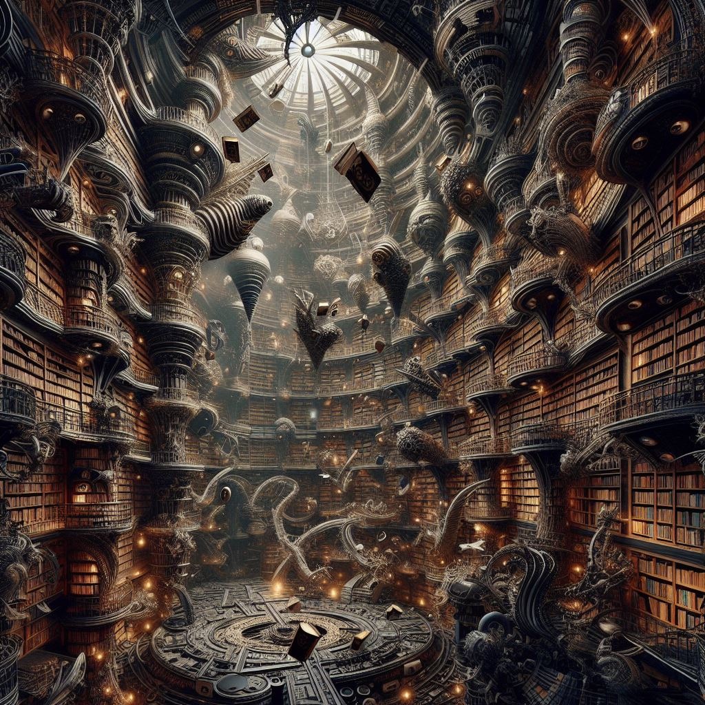The Library of Babel in the style of Hans Ruedi Giger -Courtesy of 'www.bing.com'- [La bibliothèque de Babel à la façon de Hans Ruedi Giger -Remerciements à 'www.bing.com'-].