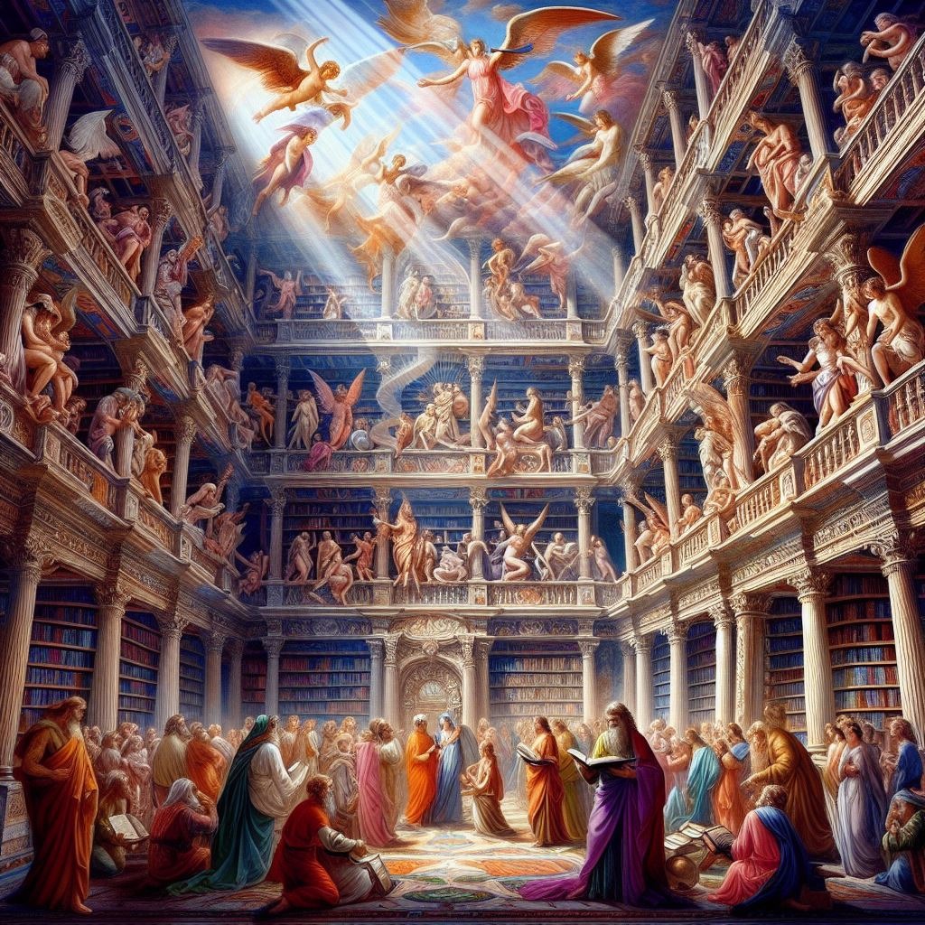 The Library of Babel in the style of Michelangelo -Courtesy of 'www.bing.com'- [La bibliothèque de Babel à la façon de Michel-Ange -Remerciements à 'www.bing.com'-].