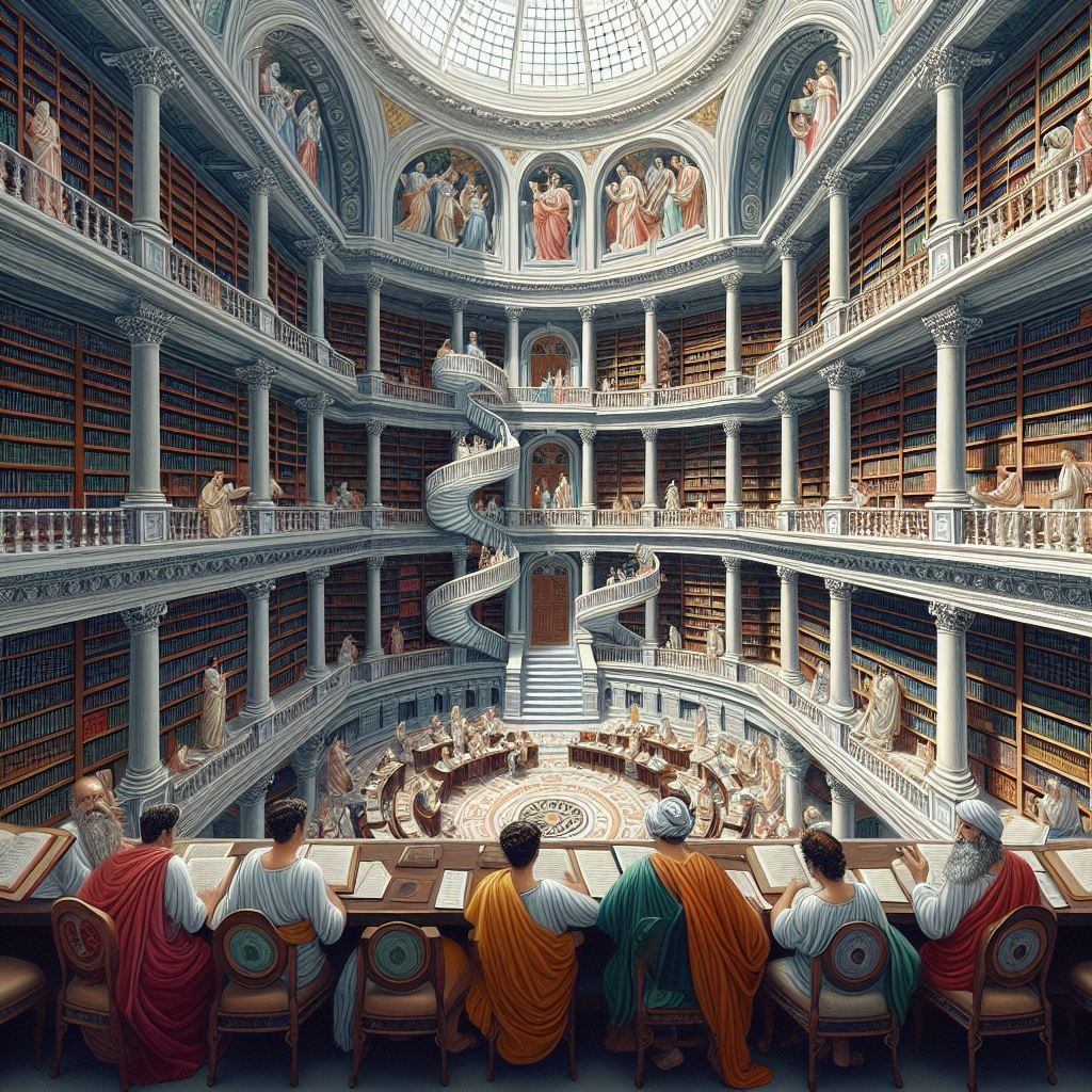 The Library of Babel in the style of Claude Ptolemy -Courtesy of 'www.bing.com'- [La bibliothèque de Babel à la façon de Claude Ptolémée -Remerciements à 'www.bing.com'-].